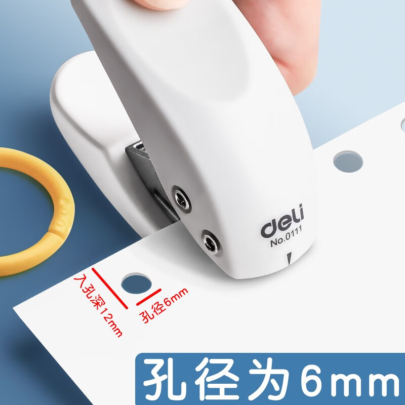 得力(deli) 打孔器圆环孔文件打孔器打孔机活页夹装订圈纸张打孔器活页本学生打洞机手动两孔打洞器 【经典款】白色打孔机